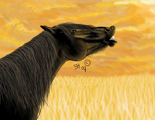 | 140307 | Pääkuva | Mari | Kaunista piirtojälkeä, pään muodot ja varjot on saatu hienosti näkymään laskevassa ilta-auringossa ja pidän erityisesti taustasta joka on tehty todella hyvin ja se sopii mainiosti mustaan hevoseen. Harja mukavasti toteututte, mutta leukakarvat eivät jotenkin sovi kuvaan. |